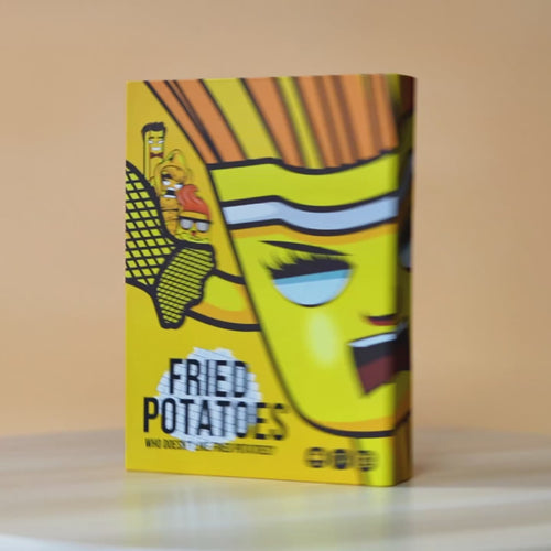 The fried potatoes game is a great game. Easy to understand, easy to play. The game itself is very well made, very engaging and fun. We even created a shorter version of it by applying penalty point in each battles. The size is perfect to add to your trip.